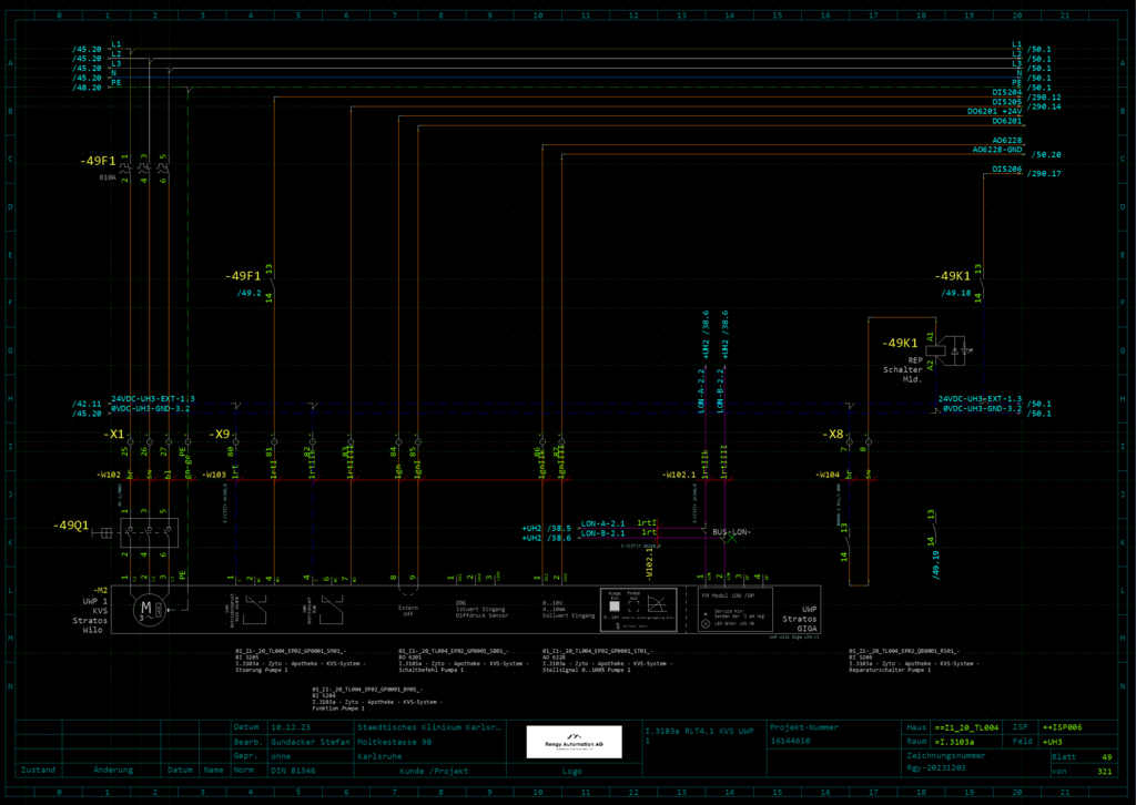 - Präzise Schaltanlagenplanung in WSCAD:Grundlage jeder sicheren Steuerung ist eine exakte elektrotechnische Dokumentation. Wir erstellen normgerechte und detaillierte Schaltpläne auf Basis von WSCAD. Dies garantiert nicht nur eine saubere Projektierung, sondern auch eine langfristige Wartungsfreundlichkeit Ihrer Anlagen.
